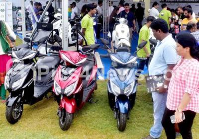 Electric Vehicles on display during 2nd day of EV (Electric Vehicle) exhibition at Palace Grounds, in Bengaluru on Sunday 3rd July 2022