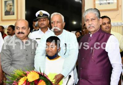 Photo Caption : CM Basavaraj Bommai and Council Chairman Raghunath Rao Malkapure greeting newly elected MLC Prakash Hukkeri during swearing in ceremony at Vidhana Soudha, in Bengaluru on Wednesday 6th July 2022