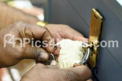 Photo Caption : Electoral officer M K Vishalakshi seal the voting ballot box after voting for the election of the President at Vidhana Soudha, in Bengaluru on Monday 18th July 2022