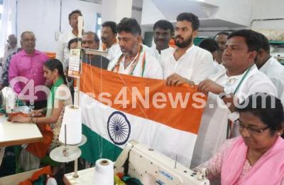 Photo Caption : KPCC President DK Shivakumar visited National Flag Making industry at Hubli-Dharwad Bengeri Khadi Village, in Hubli on Friday 22nd July 2022