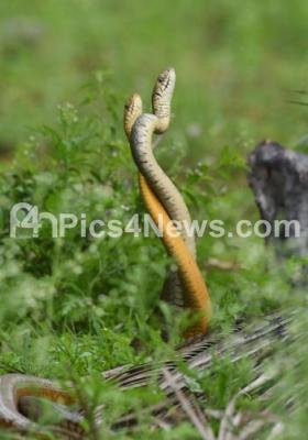 Photo Caption : Two male Rat snakes seen in a combat dance at foot hills of Chamundi Hills, in Mysuru on Sunday 24th July 2022