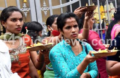 Photo Caption : Devotees offering pooja at Banashankari temple on the occasion of Bheemana Amavasya, in Bengaluru on Thursday 28th July 2022