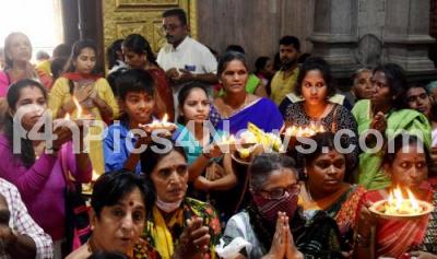 Photo Caption : Devotees offering pooja at Banashankari temple on the occasion of Bheemana Amavasya, in Bengaluru on Thursday 28th July 2022