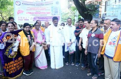 Minister Gopalaiah with Former Minister Motamma and others during walkathon to create awareness on Hepatitis on the occasion of World Hepatitis Day organised by Karnataka Gastro Center, in Bengaluru on Thursday 28th July 2022