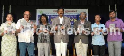 Photo Caption : Poet LN Mukundaraju releasing a book titled "Sagani Ganjalada Parimala" with MP Bacchegowda, Book Author Hemmandahalli G Muniswamy, H Dandappa, Writers Byadrahalli Shivaraj, Roopa Gowda and others at Nayana Auditorium, in Bengaluru Sunday 31st July 2022