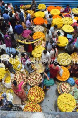 People shopping flowers at KR Market for the Varamahalakshmi festival , in Bengaluru Thursday 4th August 2022