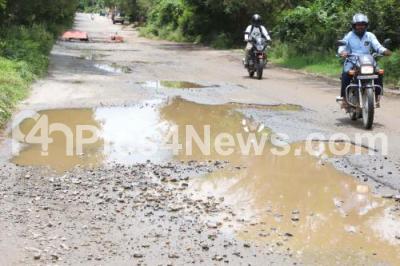 Photo Caption : Bad road conditions and pothole roads has been causing major inconvenience to people and motorists at 100 feet road, Vishweshwaraya Layout, in Bengaluru Saturday 6th August 2022