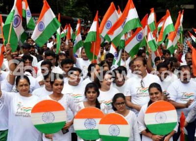 Photo Caption : MLA Uday Garudachar with Participants participated Indian Flag Walkathon as part of Azadi Ka Amrit Mahotsav at Basavanagudi, in Bengaluru Sunday 7th August 2022