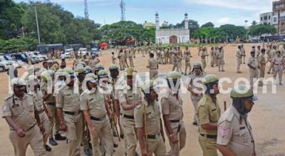 Cops and SWAT teams conducted route march at Chamarajpet, starting from Eidgah ground cops marched across Tippunagar, Anandapuram, Mysore road, in Bengaluru Friday 12th August 2022