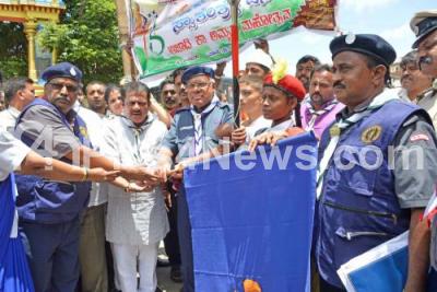 Event Description : MLA and Former Minister Zameer Ahmed Khan, Former Minister and Scouts and Guides State Chief Commissioner PGR Sindhia and others during Azadi Ka Amrit Mahotsav as part of 75th Independence day celebrations at Chamarajpet, in Bengaluru on Friday 12th August 2022