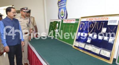 Photo Caption : Bengaluru City Police Commissioner Pratap Reddy inspecting the recovered Red Sandalwood around 722 Kgs and jewellery by RT Nagar Police limits, in Bengaluru on Wednesday 17th August 2022