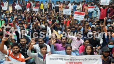 Photo Caption : KPSC candidates protesting to fulfill their various demands at Freedom Park, in Bengaluru on Friday 19th August 2022