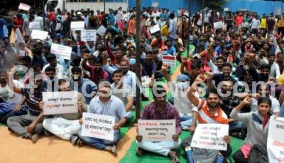 KPSC candidates protesting to fulfill their various demands at Freedom Park, in Bengaluru on Friday 19th August 2022