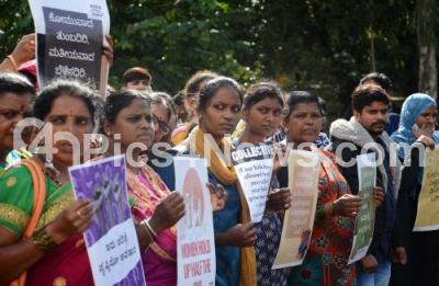 Photo Caption : Members of Various organisations protest against the release of 11 convicts involved in Bilkis Bano rape and Murder case at freedom Park, in Bengaluru on Monday 22nd August 2022