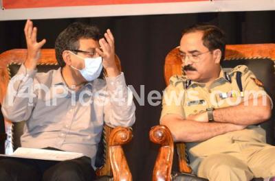 Photo Caption : Police Commissioner Pratap Reddy, BBMP Commissioner Tushar Girinath and Senior officials during a meeting at Town Hall on Ganesha Festival celebrations, in Bengaluru on Thursday 25th Aug 2022