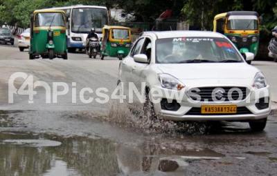 Photo Caption : Pothole roads has been causing major inconvenience to people and motorists at Congress Bhavan, Race Course road, in Bengaluru on Friday 26th Aug 2022