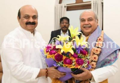Photo Caption : Chief Minister of Karnataka Basavaraj Bommai met Union Agriculture Minister Narendra Singh Tomar, in Bengaluru on Saturday 27th Aug 2022