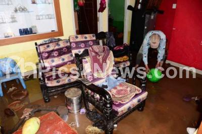 Photo Caption : Residents cleaning drainage water in their house at Ghousia Nagar after overflowing Bakshi lake due to heavy rainfall in the early hours in Ramanagar District, in Ramanagar on Monday 29th Aug 2022