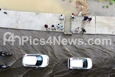 Photo Caption : Vehicles wade through flooded Mysuru Road highway near Kumblagodu, after Hosapalya (Kanminike kere) lake adjacent to Mysuru Road highway was overflowing due to overnight heavy rainfall, in Bengaluru on Tuesday 30th Aug 2022