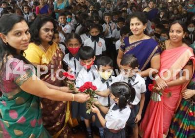 Event Description : Children giving roses to their teachers on the occasion of Teachers Day at a private School, in Bengaluru on Monday 5th September 2022