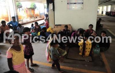 Photo Caption : People affected in floods due to incessant rains ar seen living in the basement of a apartment at KK Garden near Bellandur, as rains continue to lash Bengaluru City on Tuesday 6th September 2022