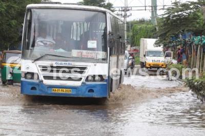 Photo Caption : Rain waterlogged at Sarjapura Road following heavy rainfall in the city, in Bengaluru on Friday 7th September 2022