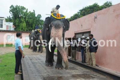 Event Description : Dasara elephants stand on the weighing scale to check weight ahead of Mysore Dasara Festival, in Mysuru on Friday 9th September 2022