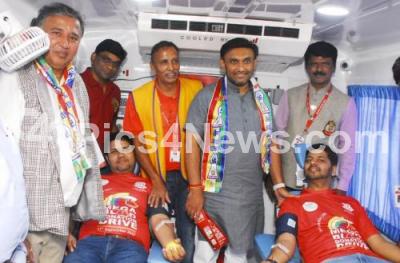 Photo Caption : Minister Sudhakar inaugurating the platinum jubilee blood donation camp organized by Akhila Bhartiya Terapanth Youth Parishat, in Bengaluru on Saturday 17th September 2022