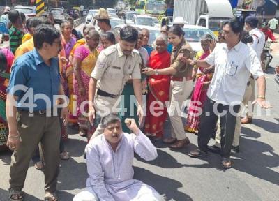 Police detain Congress party workers during a protest against the fake bills of crore of rupees in civil works in Malleshwaram assembly constituency, in Bengaluru on Friday 23rd September 2022