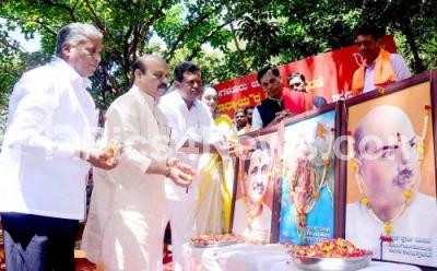 Photo Caption : CM Basavaraj Bommai with Minister V Somanna, Former Councilor Chakrapani and others during inauguration of "Pandith Deendayal Upadhyaya " park at ward no 9, Veerupakshapura, in Bengaluru on Sunday 25th September 2022