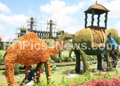 Event Description : Flower show preparation work in process at Mysuru Palace premises , ahead of Dasara Festival celebrations, in Mysuru on Sunday 25th September 2022