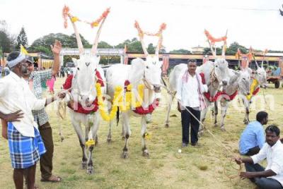 Photo Caption : Hallikar breed cattle on display during inauguration of Raita (farmers) Dasara as part of Dasara celebrations, in Mysuru on Friday 30th September 2022