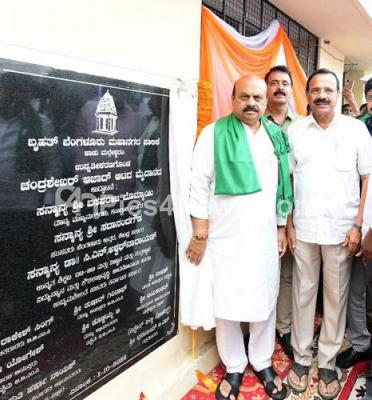Event Description : CM Basavaraj Bommai with Former Union Minister DV Sadananda Gowda and others during inauguration of Senapathi Chandrashekar Azad Grounds, at Malleshwaram, in Bengaluru on Saturday 1st October 2022