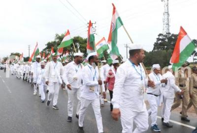 Photo Caption : Congress workers during the Congress Bharat Jodo Yatra, in Mysuru District on Saturday 1st October 2022