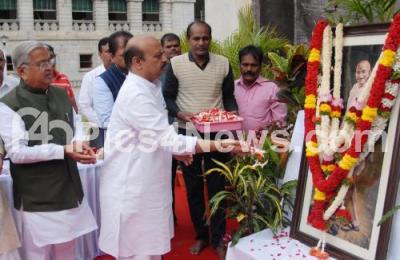 Photo Caption : Chief Minister of Karnataka Basavaraj Bommai paid tribute to Mahatma Gandhi portrait on the occasion of Gandhi Jayanti at Vidhana Soudha, in Bengaluru on Sunday 2nd October 2022