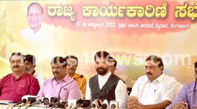 Photo Caption : CT Ravi BJP National General Secretary addressing media with BJP leaders regarding BJP state executive meeting at Palace Grounds, in Bengaluru on Thursday 6th October 2022