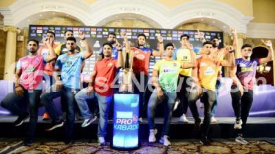 Photo Caption : PRO Kabaddi league team Captains during a press conference on Pro Kabaddi, at a private hotel, in Bengaluru on Thursday 6th October 2022
