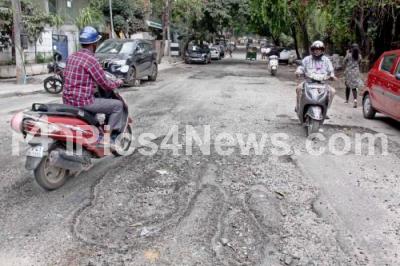 Photo Caption : Pothole roads at Railway Parallel Road, Seshadripuram , and has been causing major inconvenience to people and motorists, in Bengaluru on Friday 7th October 2022