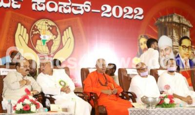 Photo Caption : Chief Minister of Karnataka Basavaraj Bommai with Minister V Somanna, Justice Gopal Gowda, Vinay Guruji, Sri Chandrashekar Shivacharya Swamiji, Dr. A S Kiran Kumar, Ex-President, ISRO and others during inauguration of "Sarva Dharma Samsath" (Parliament of all religions) organised by Rashtriya Basava Pratistana at Palace Grounds, in Bengaluru on Saturday 8th October 2022