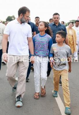 Photo Caption : Congress leader Rahul Gandhi interacting with children during Congress Bharat Jodo Yatra, in Tumkur District on Sunday 9th October 2022
