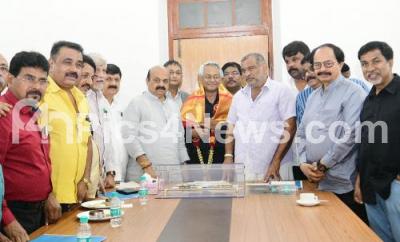 Chief Minister Basavaraj Bommai felicitated and greeted Film Director Girish Kasaravalli and team after "Nadada Navaneetha" film nominated for the Rajata Kamala (Silver Lotus) award of this year, also seen are Home Minister Araga Jnanendra, Kannada film stalwarts and others, in Bengaluru on Tuesday 11th October 2022