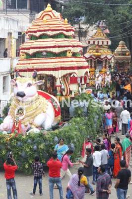 50 flower decked palanquins procession during OOR HABBA and Dasara celebrations organised by members of the Sri Krishna Seva Association celebrating Doddigunta Cox town, in Bengaluru on Sunday 16th October 2022