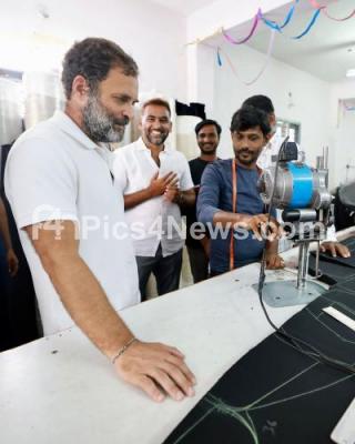 Photo Caption : Congress leader Rahul Gandhi visited and interacted with owners and workers of jeans pants and garments factory during congress Bharat Jodo yatra, in Bellary district on Monday 17th October 2022