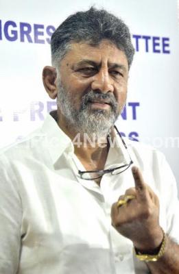 Photo Caption : KPCC President DK Shivakumar casting his vote for the AICC President election at KPCC office, in Bengaluru on Monday 17th October 2022