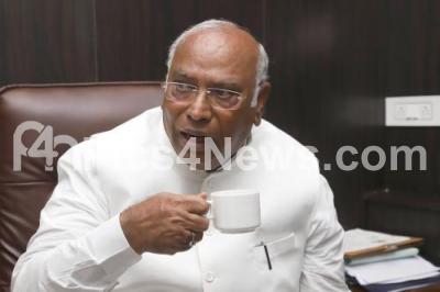 Photo Caption : AICC President candidate Mallikarjuna Kharge drinks tea after casting his vote for the AICC President election at KPCC office, in Bengaluru on Monday 17th October 2022