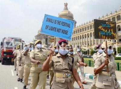 Fire personnel and homeguards during launch of fire tenders equipped with the newly introduced 90 mtr ladder at Vidhana Soudha, in Bengaluru on Thursday 20th October 2022