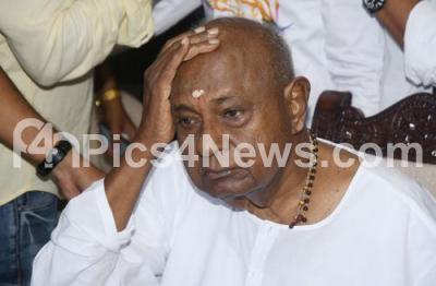 Photo Caption : Former PM and JDS Supremo HD Devegowda at Former Minister and JDS MLA GT Devegowda residence, in Mysuru on Thursday 20th October