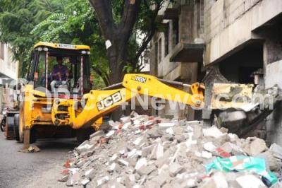 Photo Caption : BBMP demolished footpath encroachment places at Rajarajeshwari Nagar , in Bengaluru on Friday 20th October 2022
