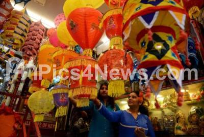 Event Description : People shopping Diyas and Colorful lanterns at Malleshwaram, ahead of Diwali Festival, in Bengaluru on Saturday 22nd October 2022