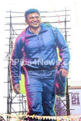 Huge cutouts of Dr Rajkumar and his son Puneeth Rajkumar from the movie “Gandhada Gudi” at Narthaki Theatre. Gandhada Gudi which is the last movie of Puneeth Rajkumar which is releasing on this month 28th October, in Bengaluru on Monday 24th October 2022